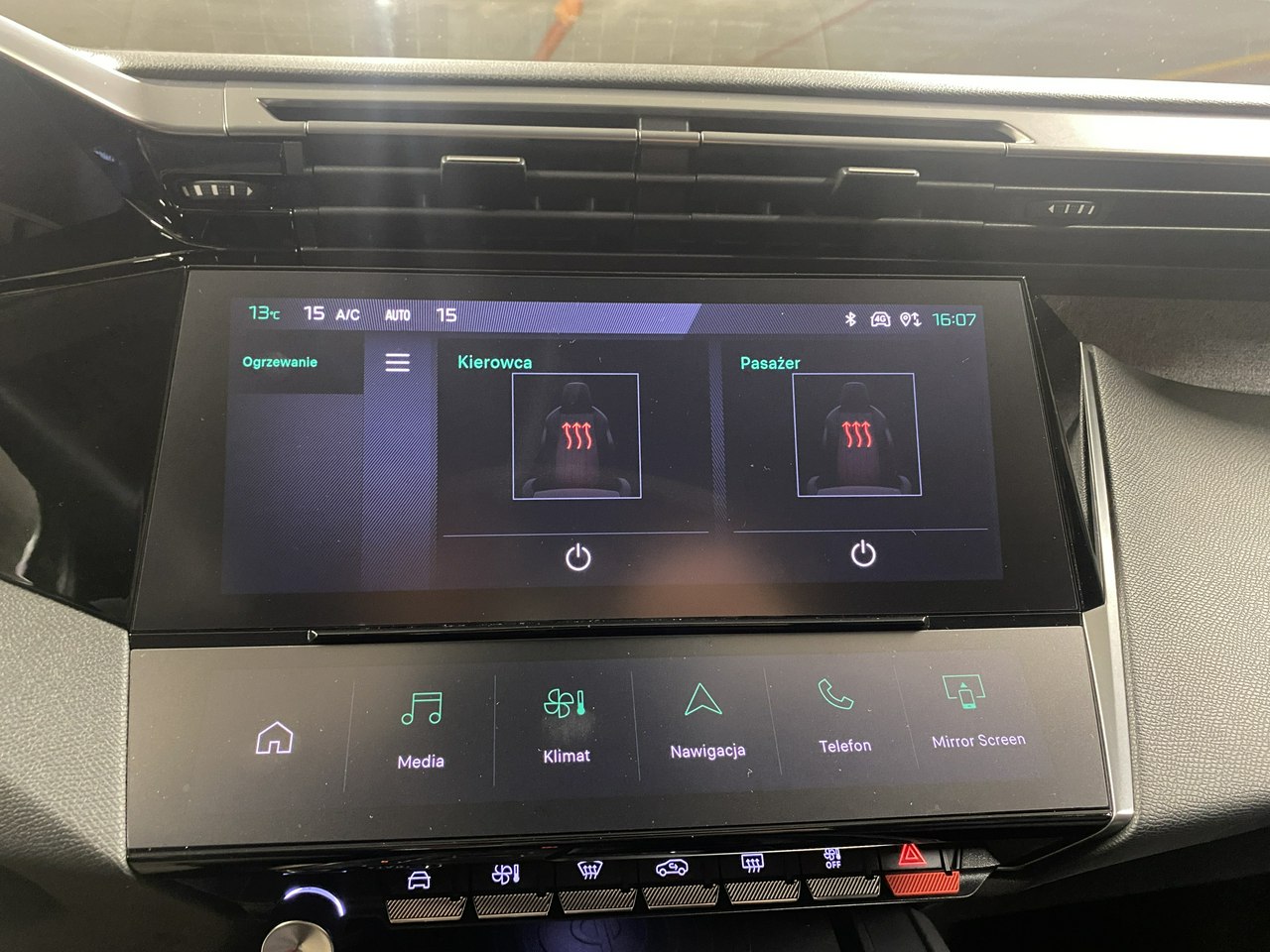 podgrzewany fotel pasażera,