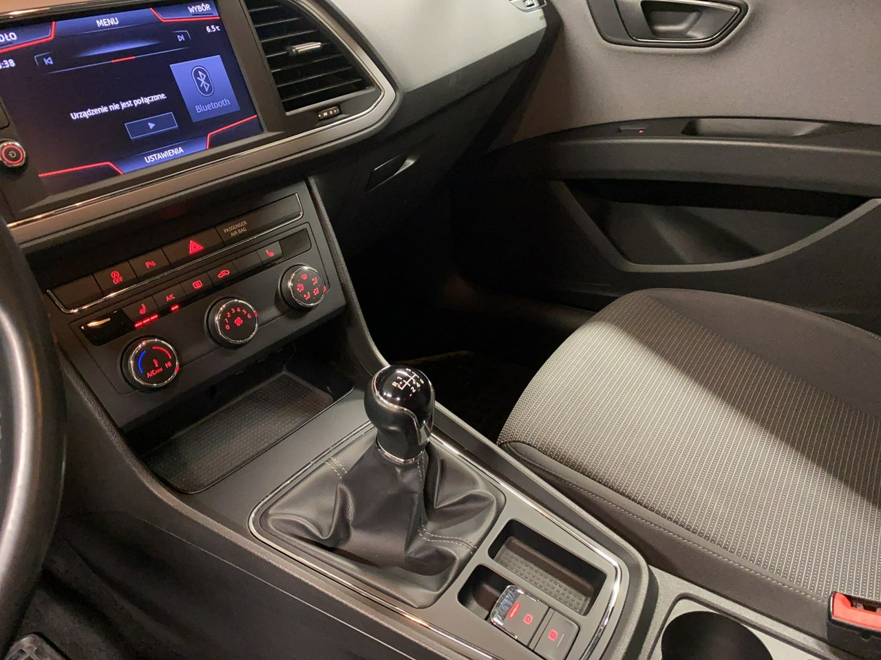 dźwignia zmiany biegów wykończona skórą,